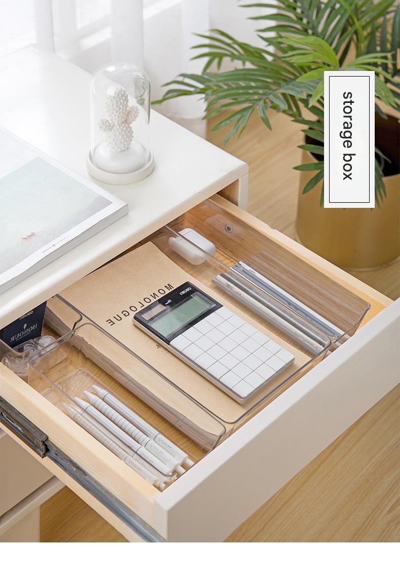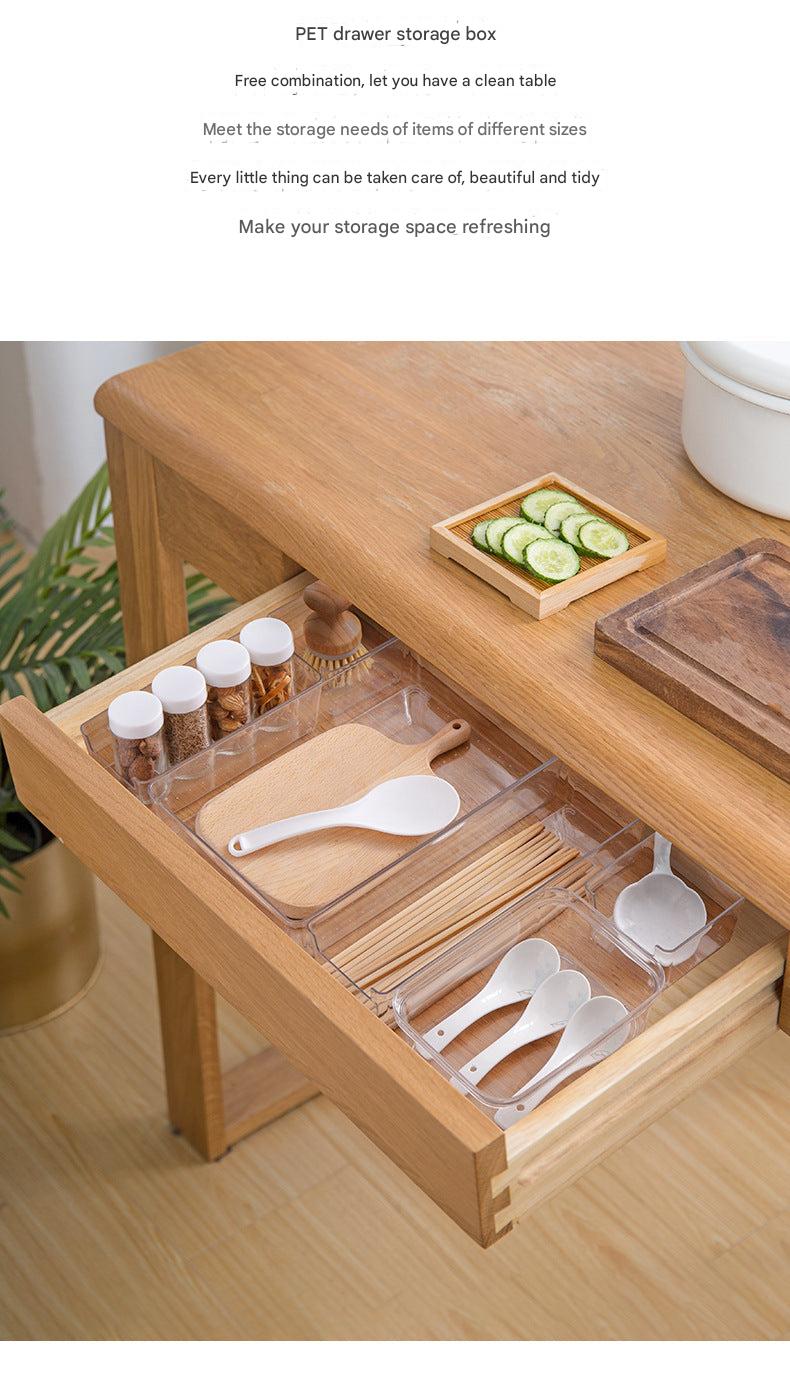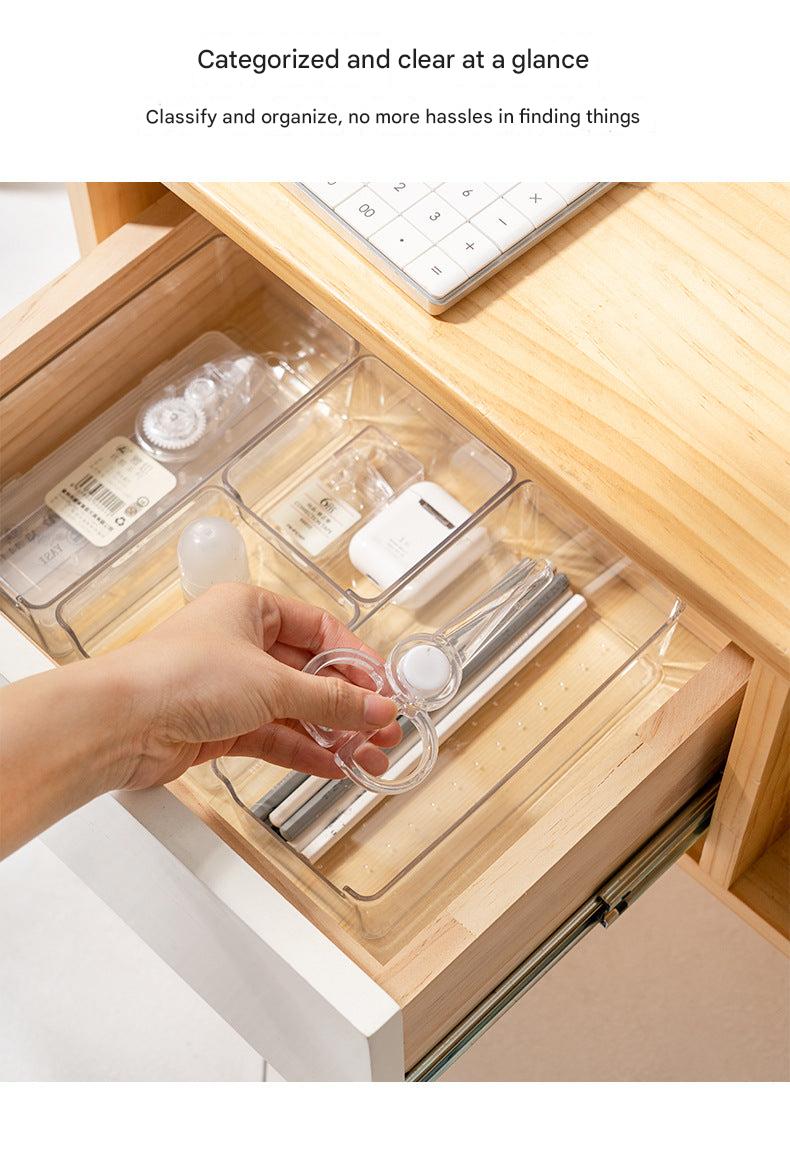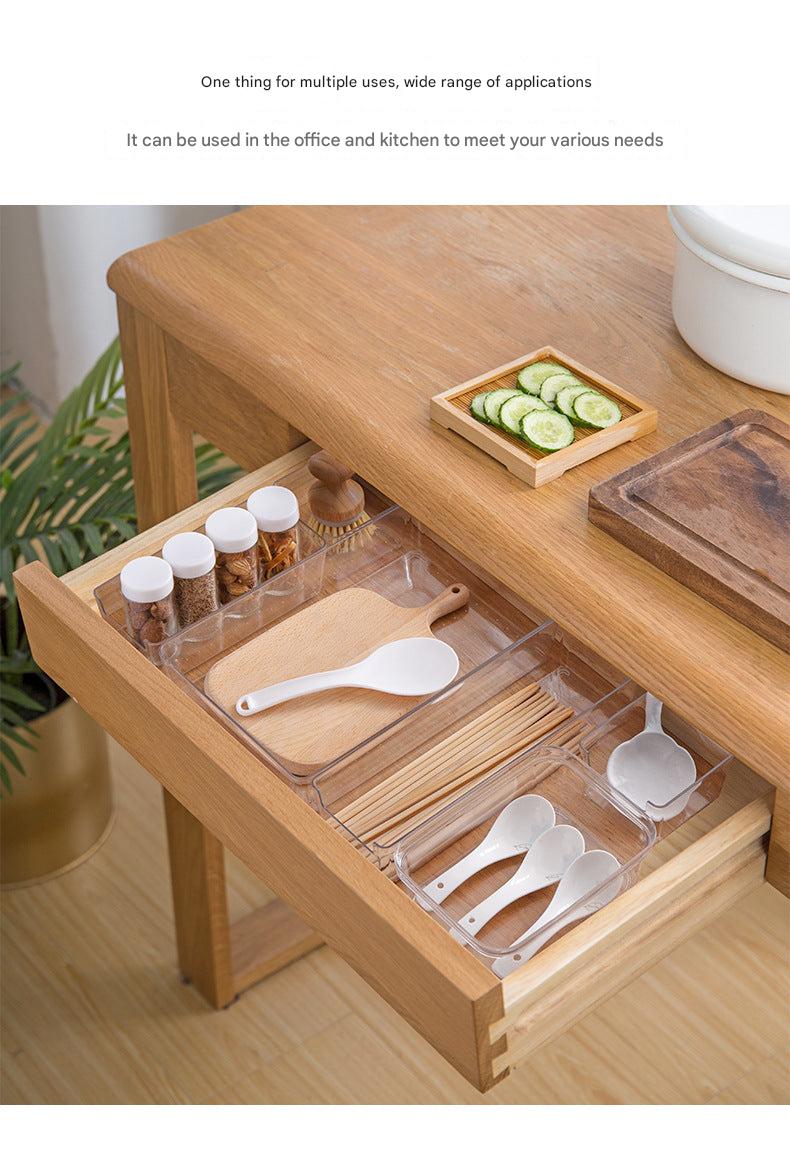 Japanese Style Desk Drawer Organizer with Transparent Plastic Compartments for Kitchen and Office