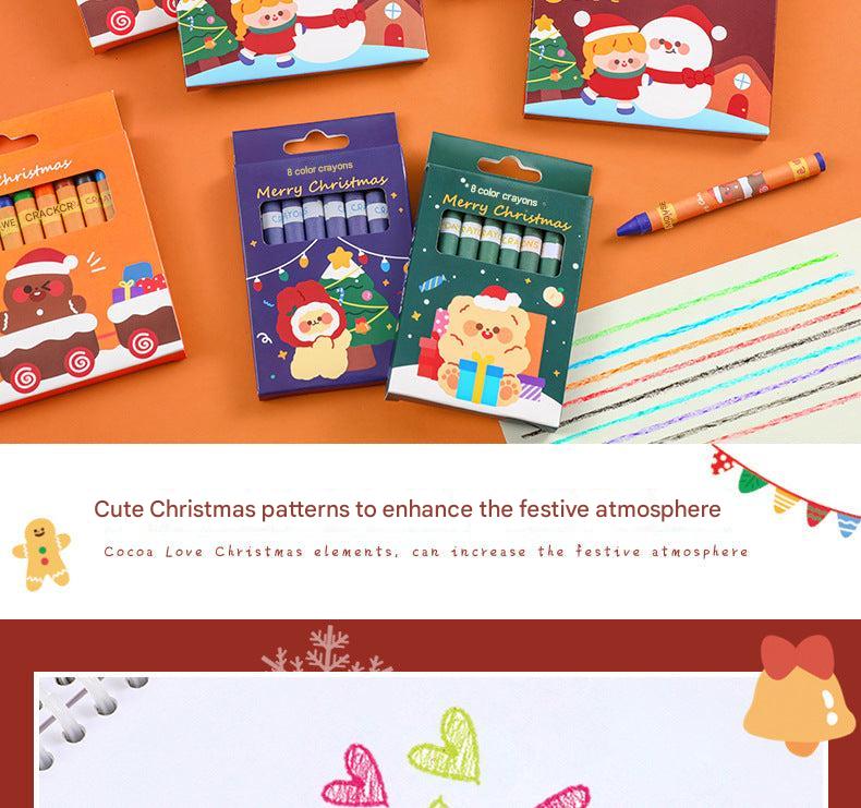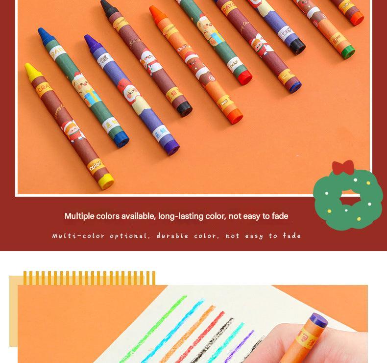 Kids Christmas Crayon Set - 8 & 12 Colors Cartoon-Themed Wax Drawing Sticks for Art and Craft, Non-Toxic, Ideal Gift for Holidays