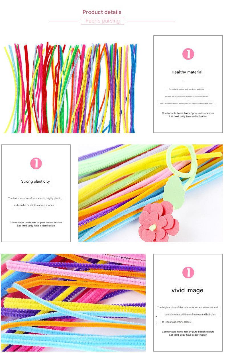 • Includes a vibrant mix of 100 macaron-colored fuzzy sticks per package.