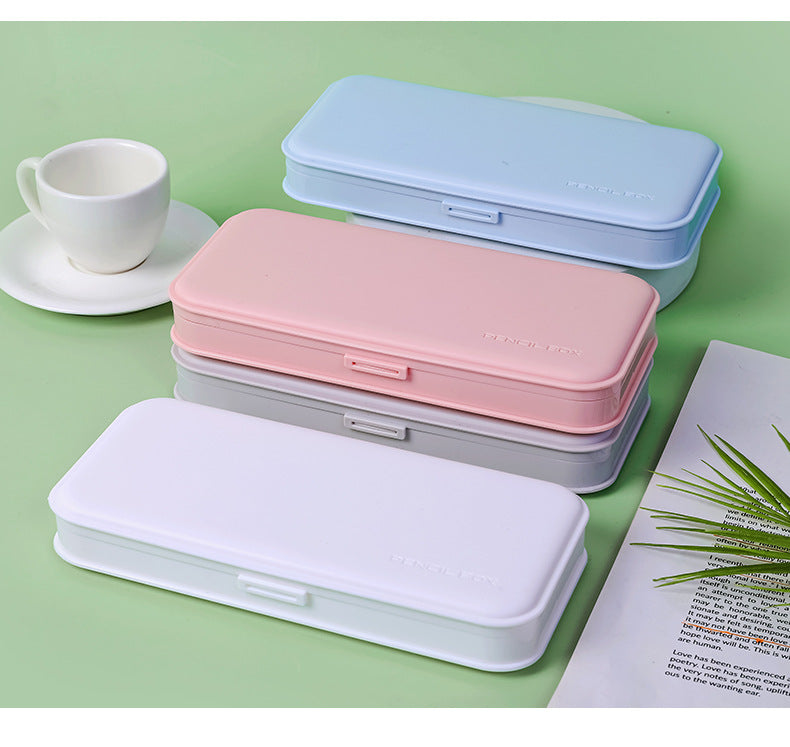 Matte Finish Kids’ Multifunctional Pencil Box - Durable PP Pencil Case with Organizational Compartments for School Supplies, Available in Blue, Pink, White, and Gray