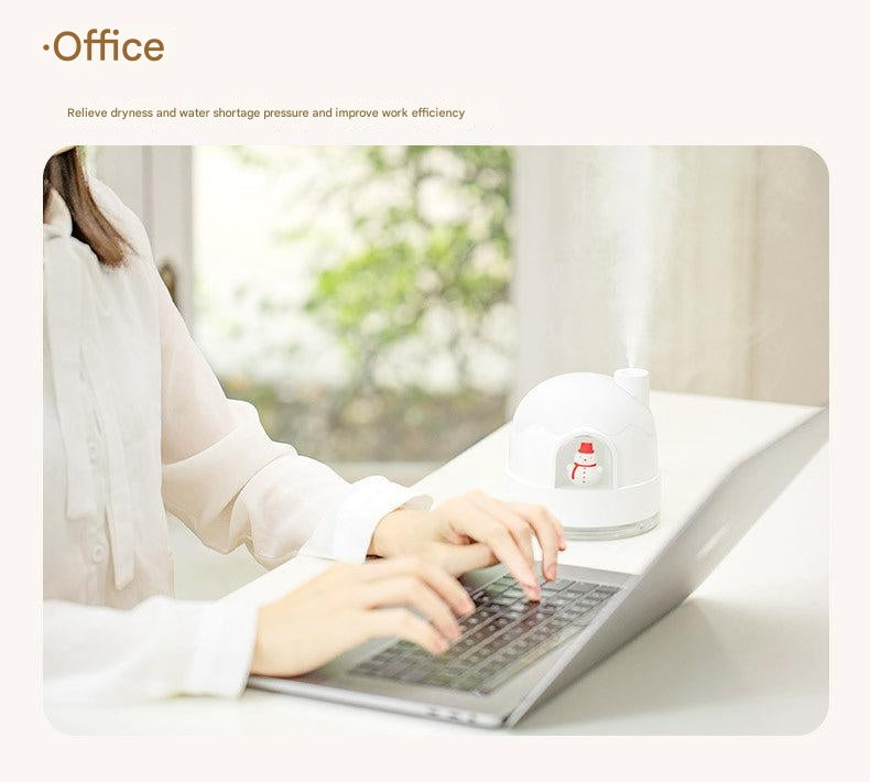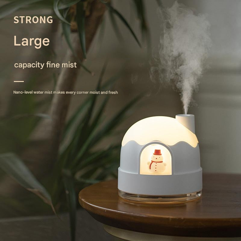 Enhance your indoor air quality with our Mini USB Humidifier Snow Hut Light, an ideal addition to any bedroom or office setting. This ultrasonic humidifier operates quietly, supporting a restful night's sleep. Compact and aesthetically pleasing, this desktop accessory complements any decor while providing necessary air moisture.