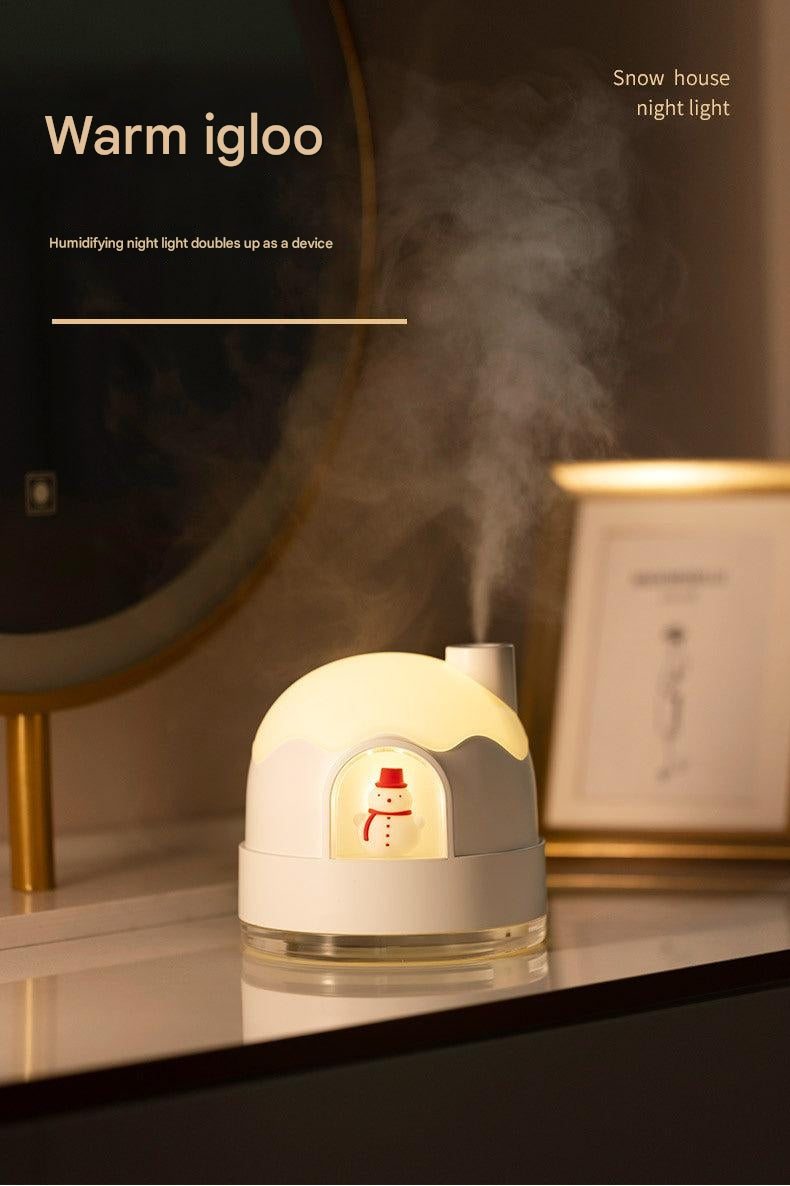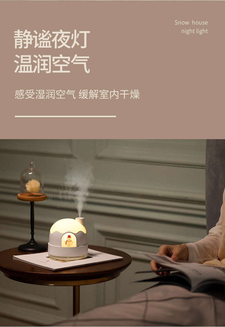 Perfect for small spaces, the humidifier features a unique snow hut design with an integrated night light, creating a soothing ambiance while hydrating the air. Users will appreciate the ease of USB connectivity and the device's low maintenance needs. Improve your living environment with this charming yet functional humidifier.