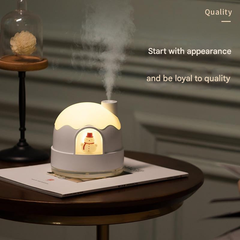 Mini USB Humidifier Snow Hut Light for Quiet Bedroom Hydration, Cute Desktop Air Humidifier