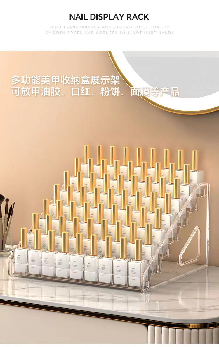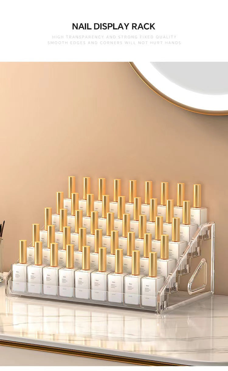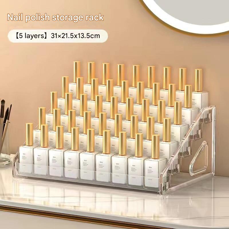 Multi-Layer Transparent Nail Polish Organizer - Acrylic Cosmetic Display Stand for Home Use