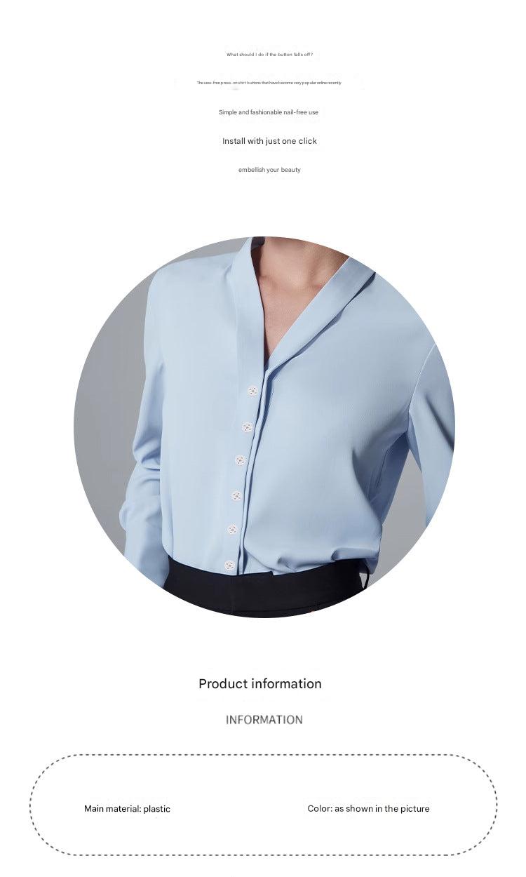 Transform your wardrobe with our innovative No-Sew Snap-On Shirt Buttons! These easy-to-use fasteners allow for seamless clothing adjustments without the need for sewing, making them perfect for collars, cuffs, or even quick fixes on the go. Crafted from durable materials, these buttons are not only eco-friendly but also reusable, making them a cost-effective choice for anyone looking to refresh their clothing style or accommodate personal preferences. Simply press to attach or detach – it's that simple! Whether you’re a fashion-savvy individual or a busy parent looking for quick solutions, these buttons will simplify your day-to-day life while keeping your wardrobe looking beautifully tailored.