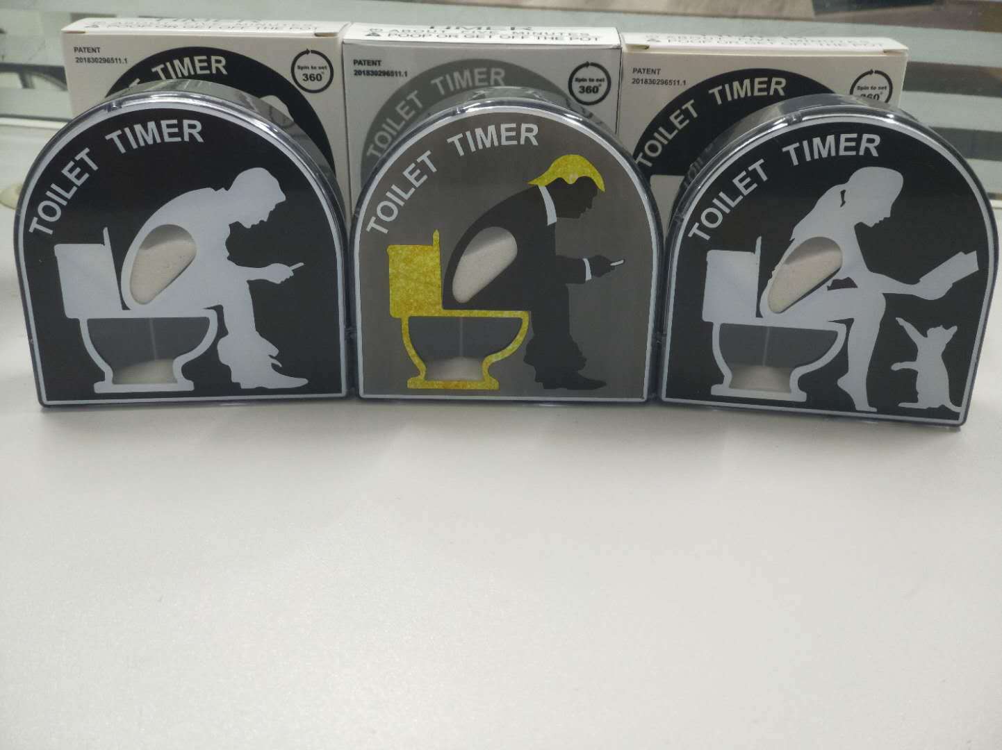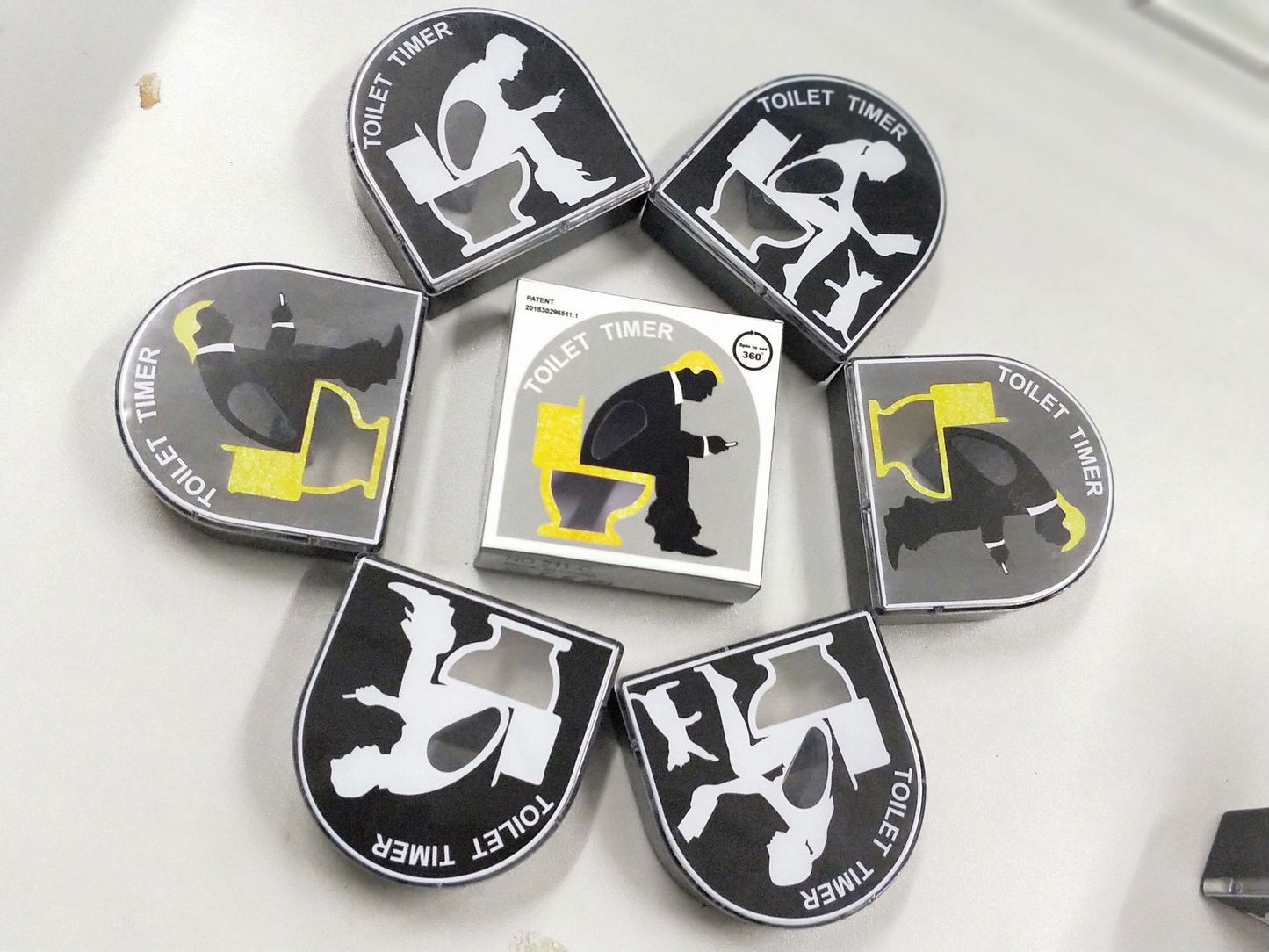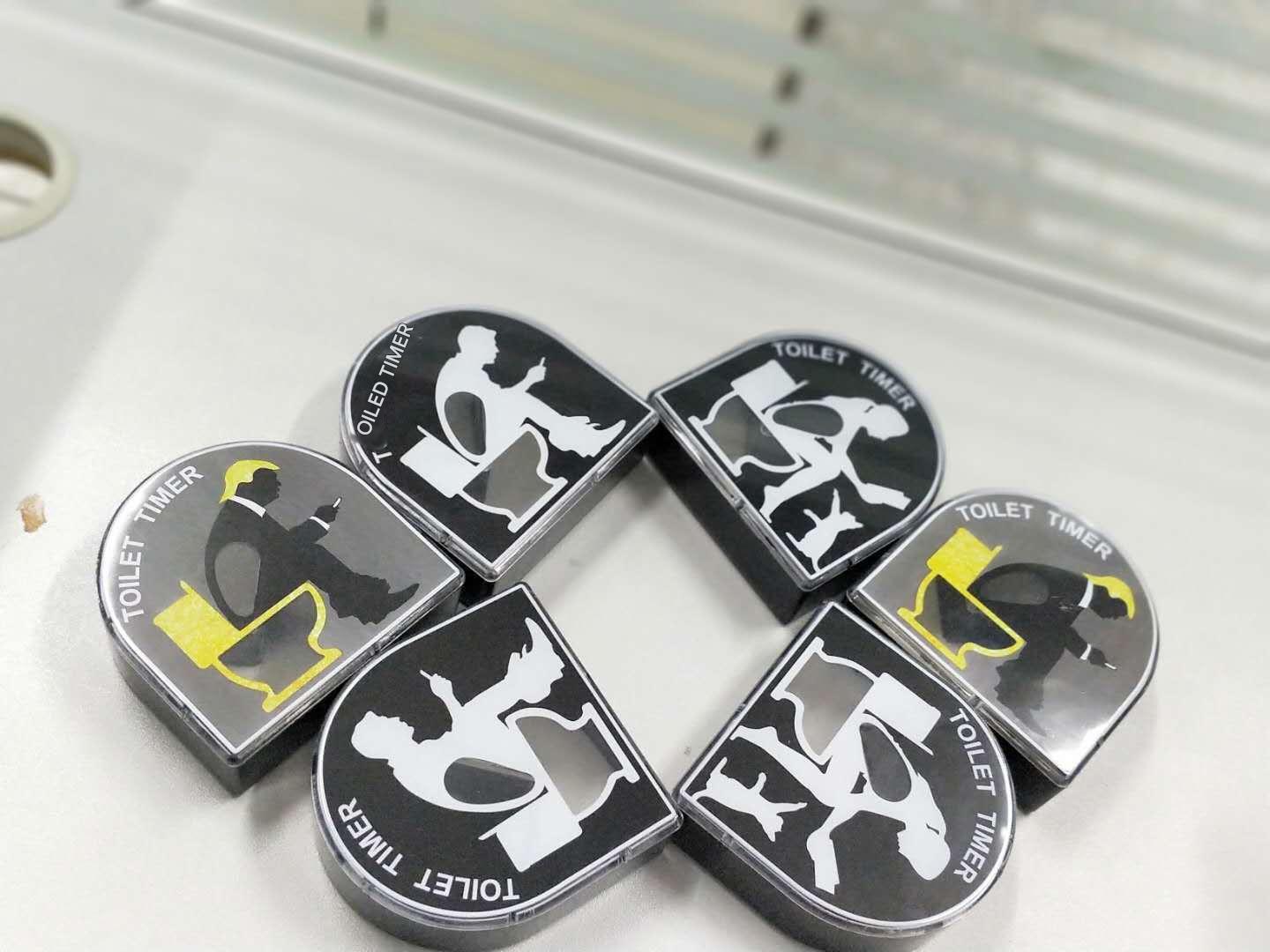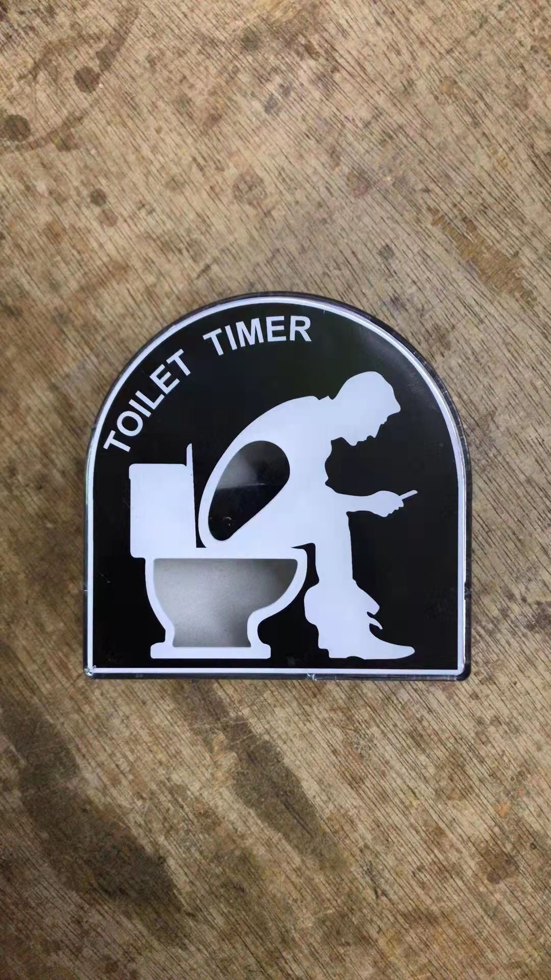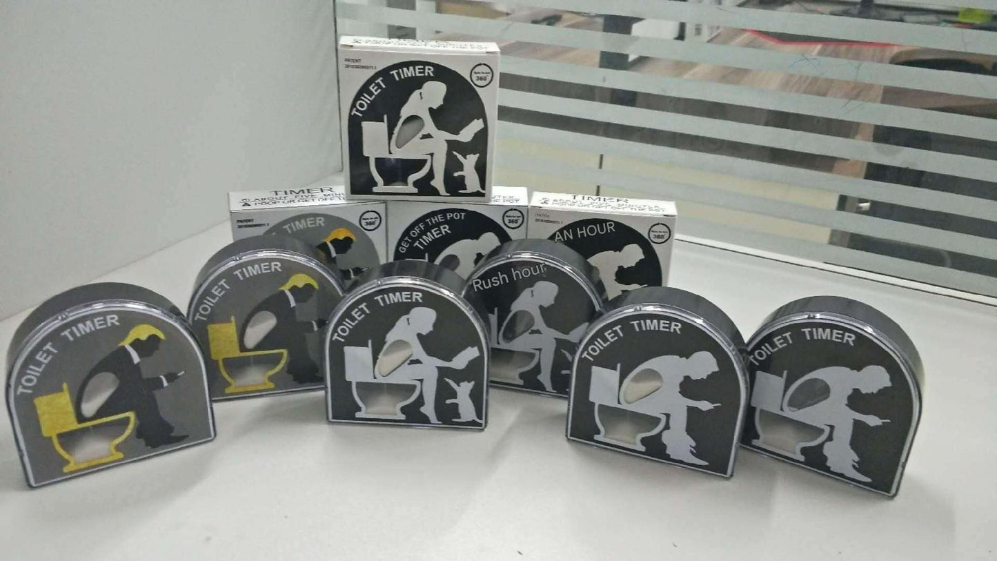 novelty toilet timer on bathroom counter