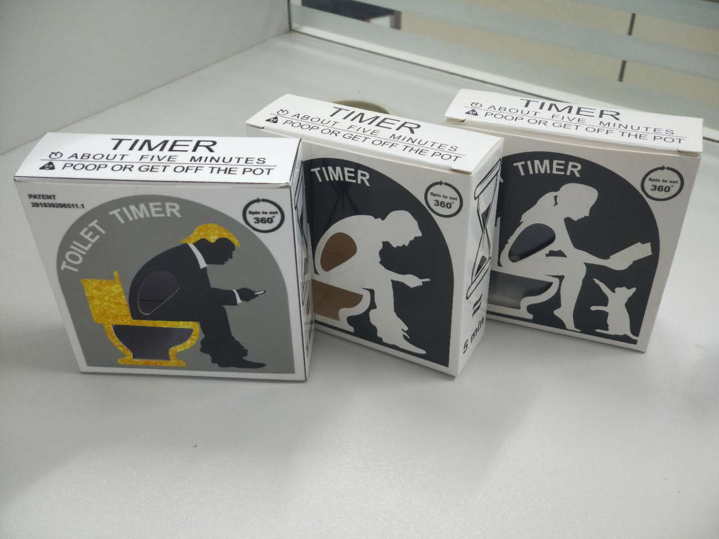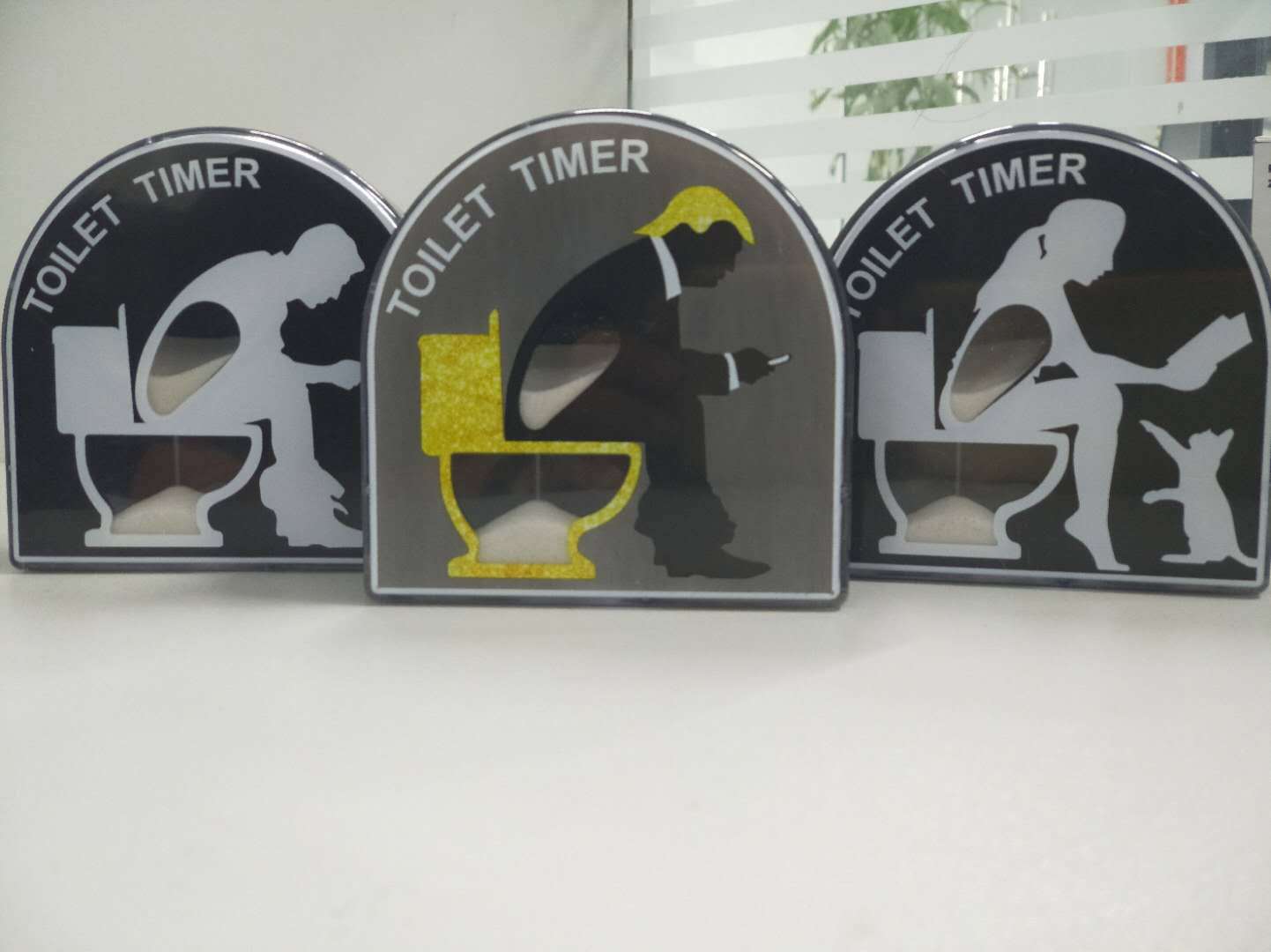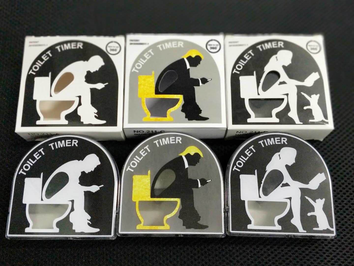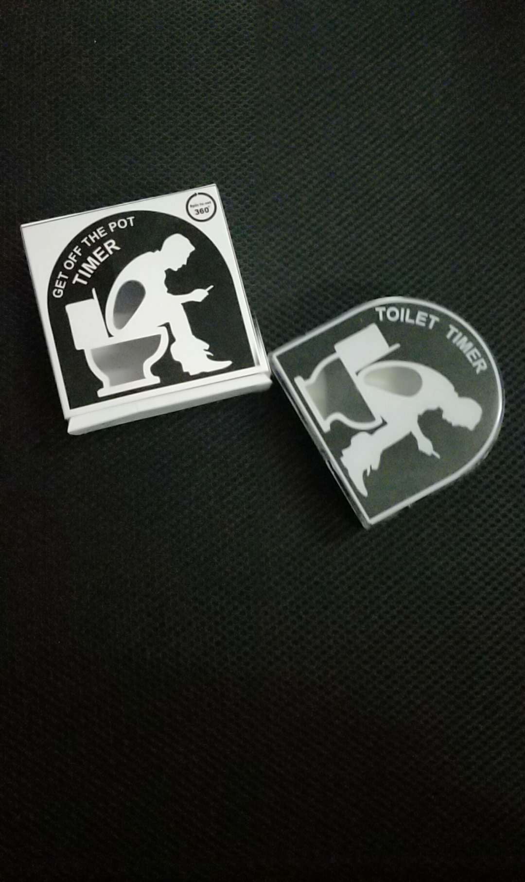 novelty toilet timer on bathroom counter