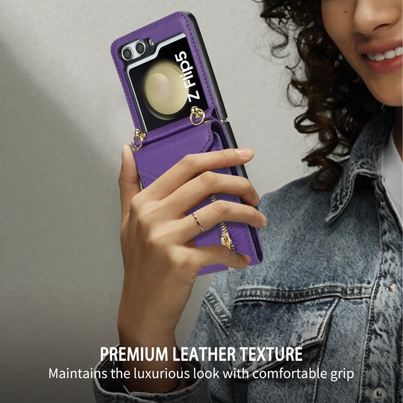 Protect your Samsung Galaxy Z Flip series smartphone with our stylish and functional premium flip wallet case. Designed specifically for Z Flip 3, 4, 5, and 6 models, this case combines elegance with practicality. It's crafted from high-quality PU leather to ensure durability while offering a sleek look that complements your device.