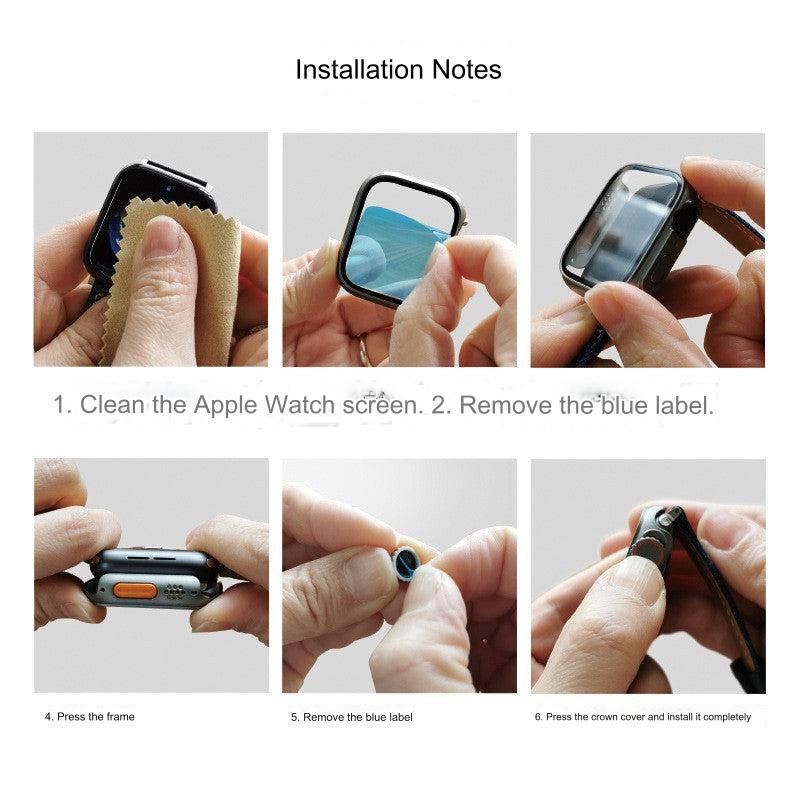 Made from high-quality polycarbonate, our protective case features a precision design that fits snugly over your Apple Watch. The tempered glass screen protector is crystal clear and tough, allowing full access to all functions without compromising visibility. Colors available include Titanium Gold, Starry Sky, and more, providing options that fit your personal style.