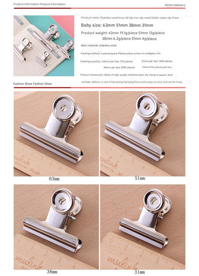 Enhance your document management system with our Premium Stainless Steel Paper Clips available in multiple sizes for various needs. Constructed from top-notch stainless steel, these binder clips offer durability and resistance against corrosion, making them a reliable choice for long-term usage. Each size, including 63mm, 51mm, 38mm, and 31mm, caters to different document thicknesses and volume, providing a strong, secure grip to ensure that your papers and receipts stay firmly in place. This makes them ideal for use in various settings such as offices, schools, or personal workspaces. The bulk pack options provide great value, helping you to stay prepared for any organizational tasks without frequent restocking. Whether you're sorting, securing, or grouping documents, our clips are the perfect tool for efficient paper management.