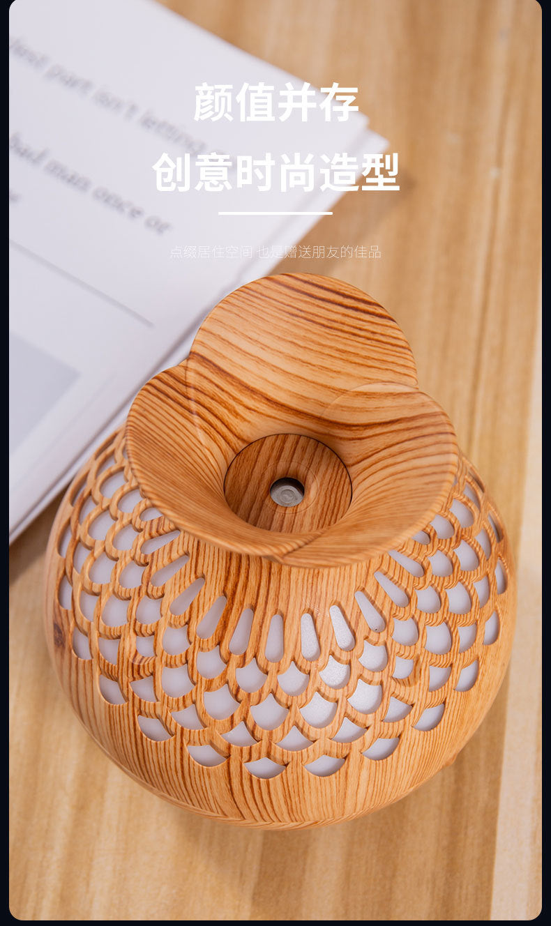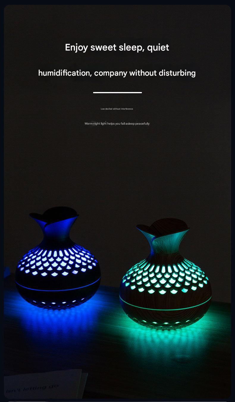 Quiet Ultrasonic Humidifier with Multicolor LED – Compact 300ml Wood Grain Design for Bedroom & Office