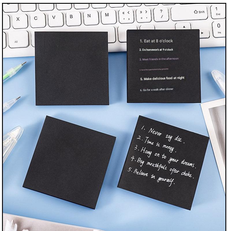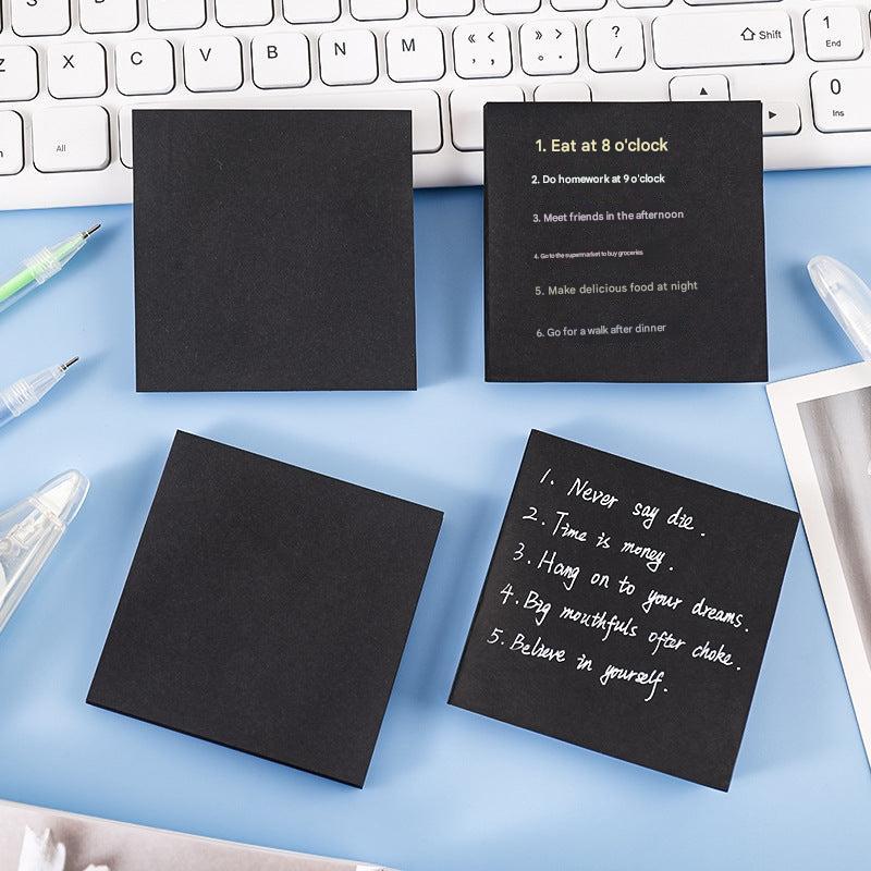 These Sleek Black Sticky Notes are designed to bring a touch of class and efficiency to your daily tasks. Whether you're jotting down reminders, organizing projects, or leaving notes for others, these sticky notes provide a reliable and stylish way to communicate. The strong adhesive backing makes sure your messages stick right where you need them but come off cleanly without damage. Perfect for students, professionals, and anyone looking to streamline their note-taking, these notes are compact and portable. Made with eco-friendly materials, they're a responsible choice for today's eco-conscious users.