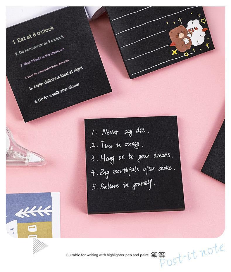 Sleek Black Sticky Notes - Easy Post Memo Pad for Students and Office Use