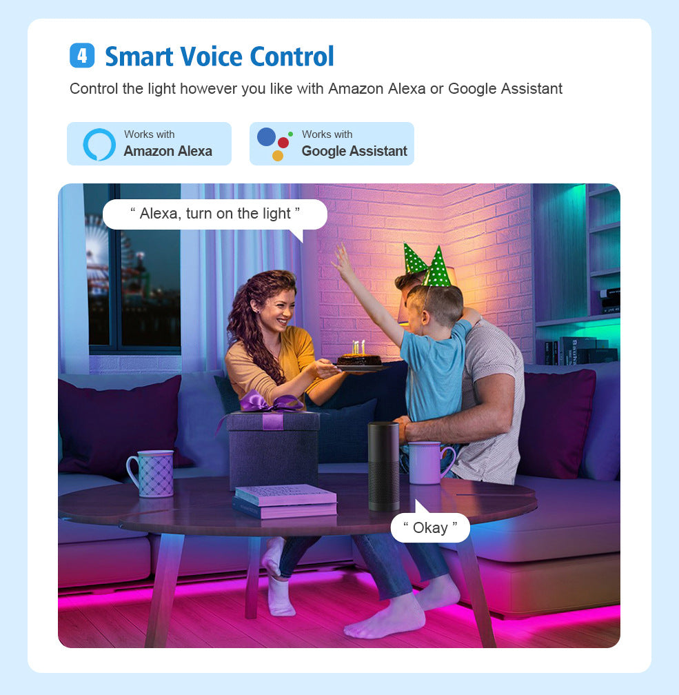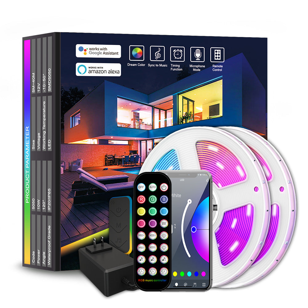 Smart RGB LED Strip Light Kit, 5050 Waterproof with WiFi Connectivity and Bluetooth Music Sync, Remote Control via App for Home, TV Background Lighting