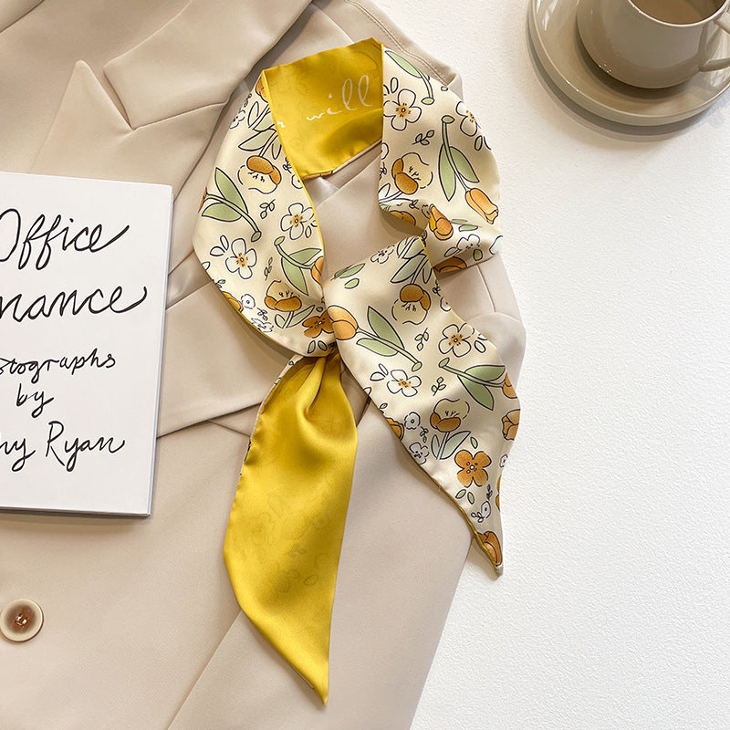 Spring and Summer Multi-Functional Yellow Fashion Scarf - Chic Floral Hairband and Bag Accessory