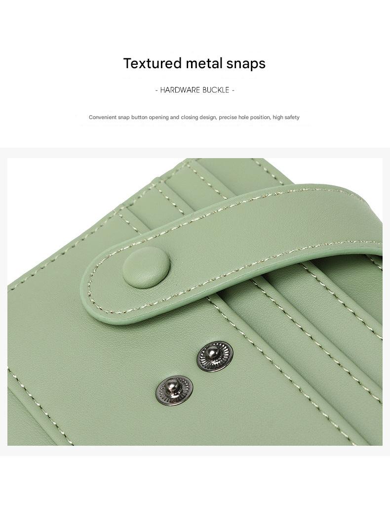 The Stylish RFID Blocking Women's Wallet is a lightweight and compact solution for safeguarding your cards. This wallet not only blocks RFID signals, protecting your sensitive information, but also offers a stylish, everyday accessory. Crafted with durable PU material and available in multiple colors such as green, pink, black, wine red, gray, and blue, it complements any fashion sense. It's designed with practicality in mind, featuring a simple snap closure and enough space for cash and cards. Ideal for daily use or special occasions, you can have peace of mind with its waterproof feature. Choose this chic wallet to elevate your style while ensuring your cards remain secure.