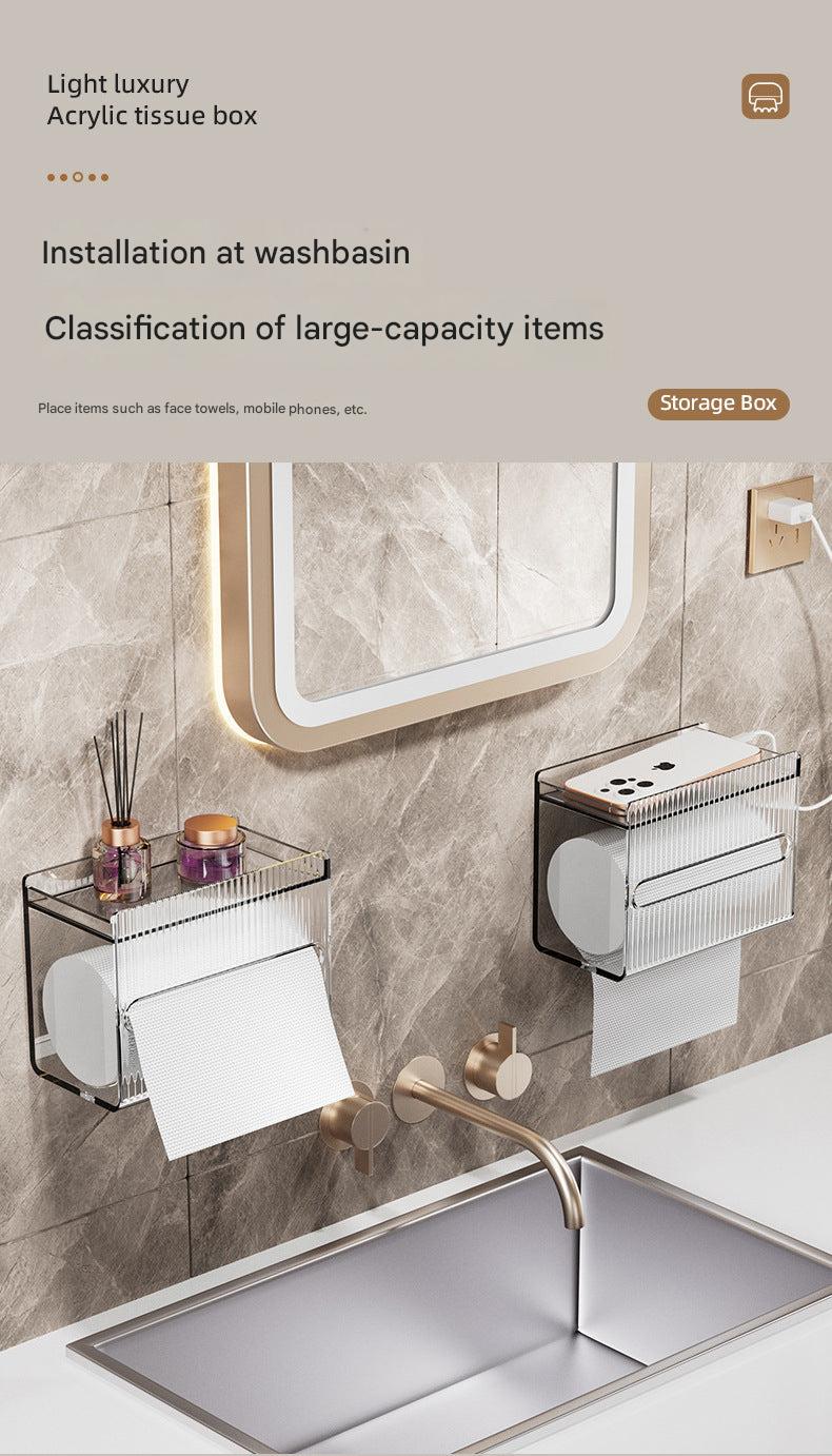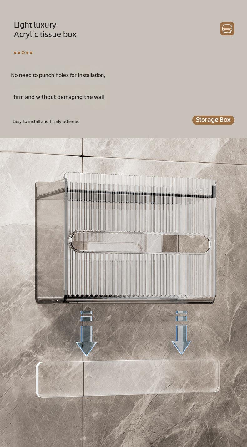 Stylish Waterproof Wall-Mounted Acrylic Tissue Box - No Drill Needed for Bathroom & Kitchen