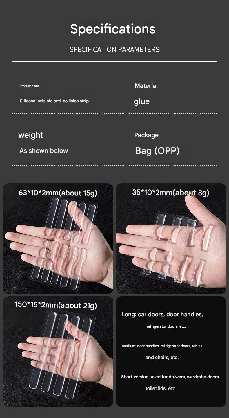 These transparent silicone bumpers are designed to be placed on door handles and cabinets to prevent collisions that can cause damage or noise. With a variety of sizes available (short, medium, and long), they are ideal for use in any home setting. Their soundproofing abilities help create a quieter living space, making them perfect for families with young children or pets. Installation is effortless with their adhesive backing, allowing you to quickly enhance the safety and comfort of your home. Customers love how these bumpers blend seamlessly into their decor while providing much-needed protection.